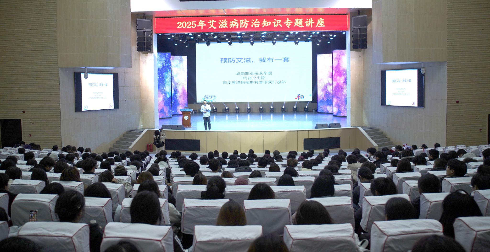 为深入贯彻教育部办公厅和陕西省教育厅关于“世界艾滋病日”宣传教育活动的相关要求,提升师生艾滋病防治意识与健康素养,筑牢校园健康安全防线,12月16日,咸阳职院在学生活动中心演播厅成功举办艾滋病防治知识专题讲座。本次讲座邀请西安雁塔玛丽斯特普你我门诊部主治医师徐超主讲,沣西新城钓台卫生院结核病艾滋病防治科科长刘赞,后勤处处长及相关负责人参加。各二级学院学生代表及部分教师聆听讲座。