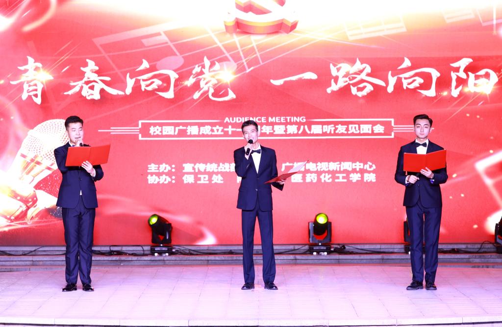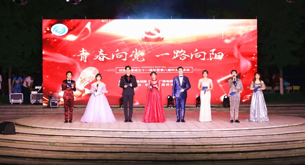 本次听友见面会是由宣传统战部主办,保卫处、团委、医药化工学院协办,以“青春向党 一路向阳”为主题,全面推进“双高计划”落地,丰富校园文化内涵,展示当代大学生的精神风貌,集舞蹈、歌曲、朗诵、话剧、相声、合唱于一体的综合性文艺演出。