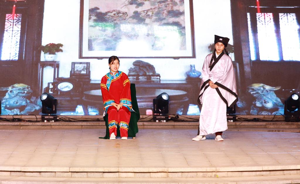 《孔雀东南飞》将整场演出推向高潮,话剧以刘兰芝、焦伸卿的爱情故事为题材,用别具一格的表演诠释爱情的真谛,表达对美好生活的追求,反映万千学子在咸职成就梦想,实现抱负的青春故事。话剧《上课》以情景朗诵的形式,诉说党史故事,献礼建党100周年,弘扬大学生爱党爱国的家国情怀。相声《好学生,坏学生》说学逗唱大学生活的点点滴滴,引得观众开怀大笑、掌声阵阵,又启发大学生对人生的思考。