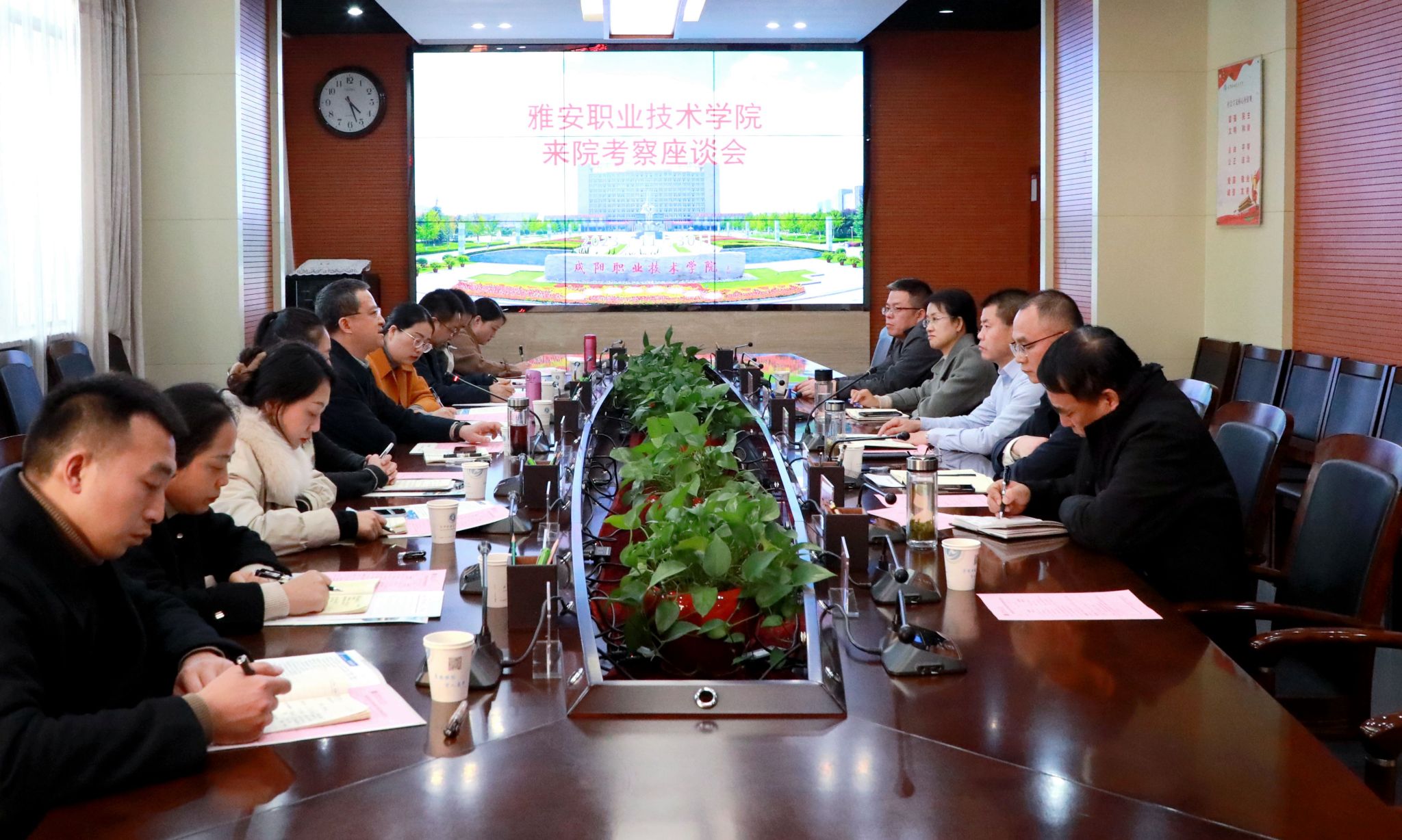 11月30日,雅安职业技术学院党委副书记、校长黄诚一行9人来咸阳职院考察交流。学院党委副书记张建刚、副院长杨新宇,教务处、就业与校企合作处、师范学院负责人参加座谈会。