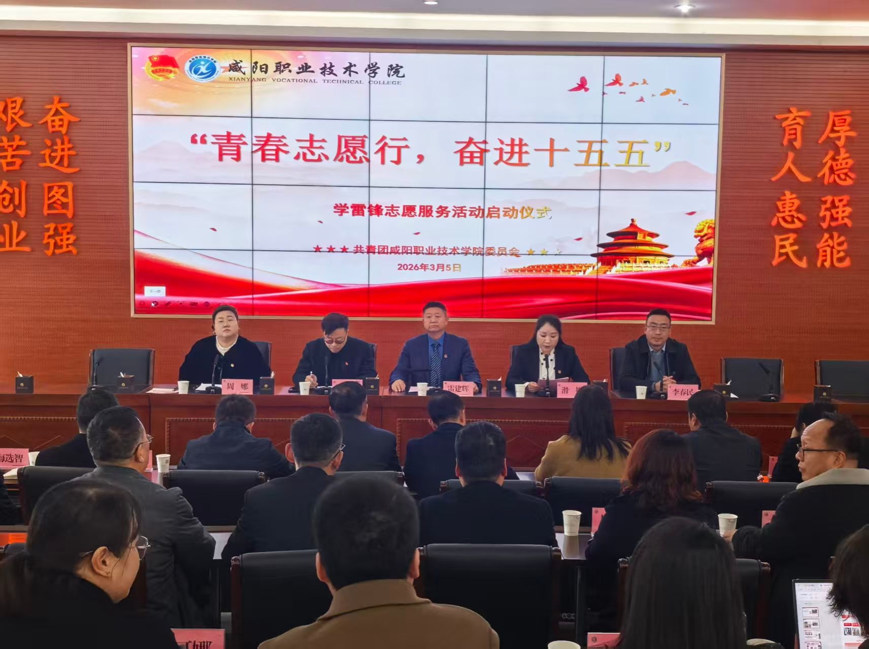 三月春风暖,志愿正当时。为弘扬雷锋精神和“奉献、友爱、互助、进步”的志愿精神,推动学院志愿服务制度化、常态化发展,3月5日下午,咸阳职院举行2026年“青春志愿行 奋进十五五”学雷锋志愿服务活动启动仪式。学院副院长雷建辉,团委、学生处、马克思主义学院负责人,各二级学院党总支、团总支负责人及志愿者代表参加活动。